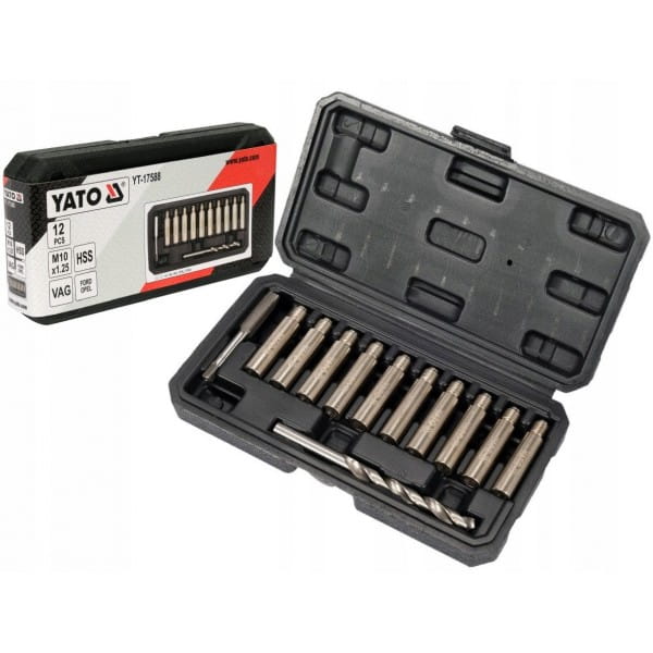 - zawartość zestawu: wiertło (Ø8.8 mm), gwintownik M10x1.25 mm, prowadnica z nadwymiarowym gwintem x10 (gwint M10x1.25 mm, Ø12 mm, L=42 mm)