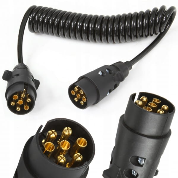 ️Dzięki spiralnej formie kabel można rozciągnąć do długości około 3 m w czasie użytkowania. Na obu końcach znajduje się plastikowa obudowa z 7 bolcami.
