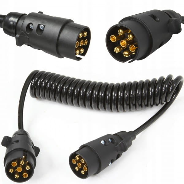 ️PRZEWÓD KABEL SPIRALNY Z WTYCZKA 7 PIN 3m 12V 2x wtyk męski