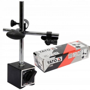 Profesjonalny statyw magnetyczny YT-72460 do czujników zegarowych YT-72450 i YT-72453. Posiada przegub sprężysty dla dokładnego pozycjonowania czujnika zegarowego na mierzonym elemencie. Centralne blokowanie pokrętłem jednocześnie środkowego i górnego przegubu. Podstawa magnetyczna z rowkiem pryzmatycznym od spodu. Duża siła przyciągania zapewnia stabilne i pewne połączenie z elementami metalowymi - odpięcie elementu realizowane jest specjalnym pokrętłem.