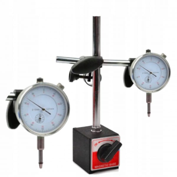✔️ Czujnik zegarowy pokazuje nam dokładność co do 0,01mm. Magnetyczna podstawa zwiększa komfort użytkowania.