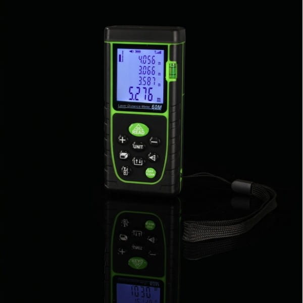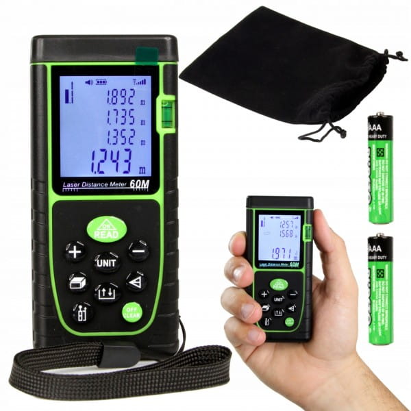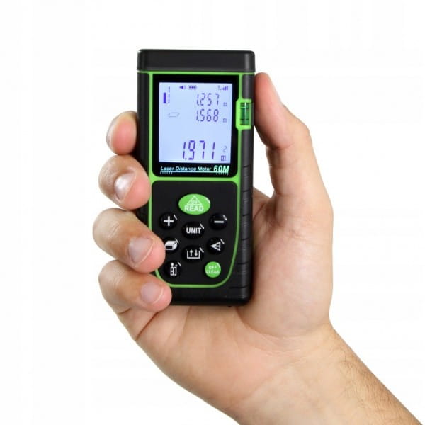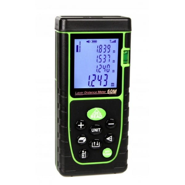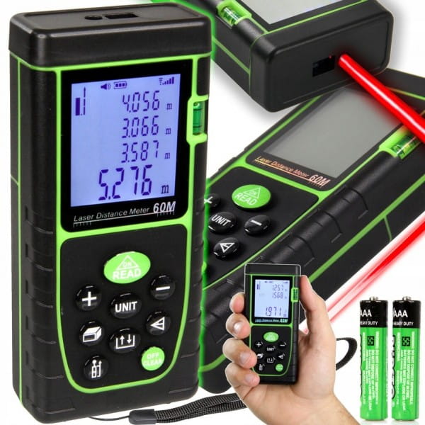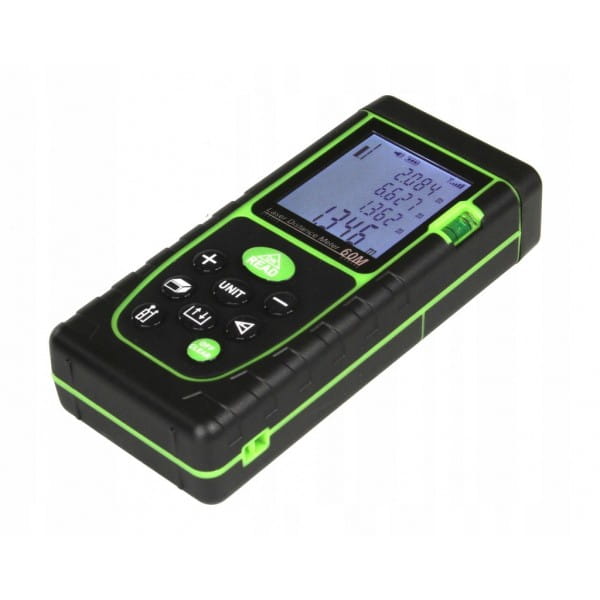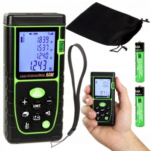 DALMIERZ LASEROWY MIERNIK ODLEGŁOŚCI CYFROWY 60M POZIOMICA WODOODPORNY LCD