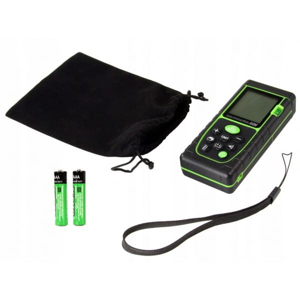 Umożliwia pomiar odległości od 0,05 do 60m, a dokładność pomiaru to +/- 1 mm. Dodatkowo posiada funkcję pomiaru powierzchni mierzonego obiektu, jego objętości oraz wysokości.