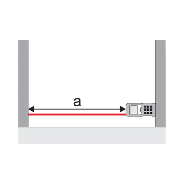 Aby wykonać pomiar należy wycelować plamkę lasera w miejsce, do którego będzie mierzona odległość. Dalmierz dokona pomiaru, a wynik zostanie pokazany w polu ostatniego pomiaru.