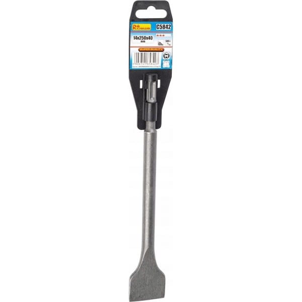 - Dłuto płaskie o długości 250 mm i szerokości 40 mm z uchwytem SDS-Plus.