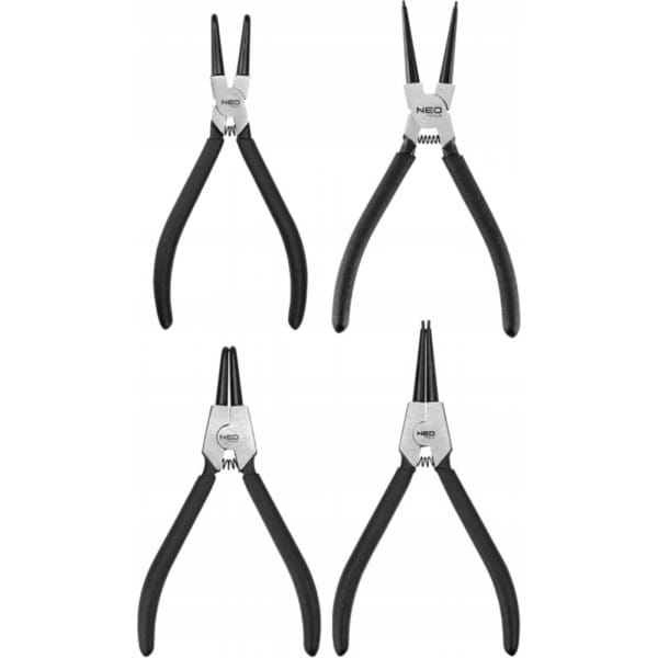 Szczypce segera do pierścieni osadczych, zestaw 4 szt. 01-097 marki NEO to kompleksowy zestaw czterech narzędzi, przeznaczonych do pracy z pierścieniami osadczymi sprężynującymi. Szczypce wykonane z wysokiej jakości stali chromowo-wanadowej, rozróżniają się ze względu na charakterystykę budowy kleszczy: zewnętrzne proste 180 mm, zewnętrzne wygięte 170 mm, wewnętrzne proste 180 mm, wewnętrzne wygięte 170 mm. Posiadają jednokomponentowy, wygodny w pracy uchwyt. Niezbędne narzędzia dla profesjonalistów.
