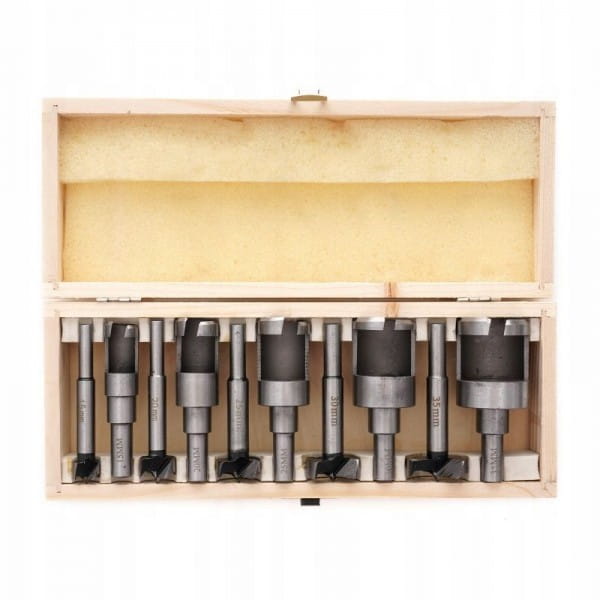 Profesjonalny zestaw sękowników i flekowników marki Kraft&Dele model KD979 przeznaczony do prac stolarskich i ciesielskich przy użyciu wiertarki stołowej lub ręcznej.
