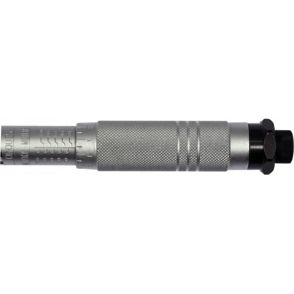 - Pokrętło mikrometryczne obracać zgodnie z kierunkiem ruchu wskazówek zegara, do momentu ustawienia żądanego momentu obrotowego. Żądany moment obrotowy jest - ustawiony w momencie, gdy podziałka na pokrętle mikrometrycznym będzie się pokrywała z pionową linią na ramieniu klucza.