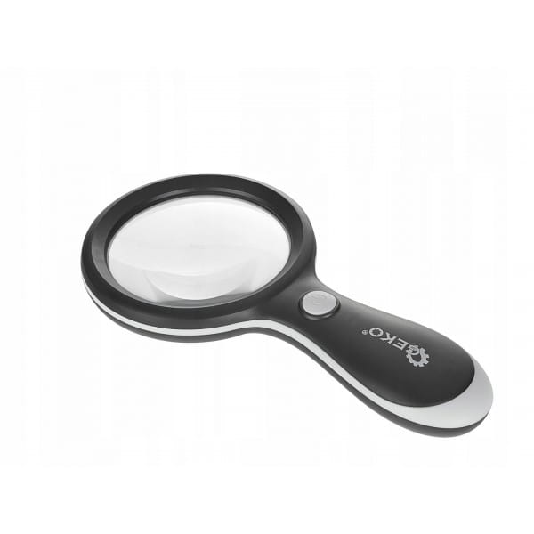 - Ergonomiczna rękojeść: Lupa posiada specjalnie zaprojektowaną, ergonomiczną rękojeść, która dopasowuje się do naturalnego kształtu dłoni, co zapewnia komfortowe i pewne trzymanie narzędzia.