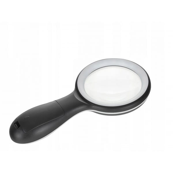 Lupa jest zasilana trzema bateriami AAA, co zapewnia mobilność i niezależność od zewnętrznych źródeł zasilania. Ergonomiczna rękojeść została zaprojektowana z myślą o wygodzie użytkownika.