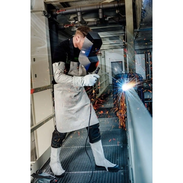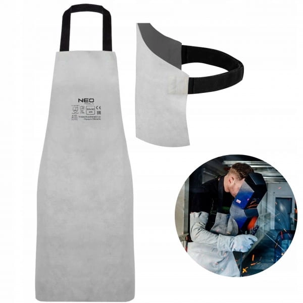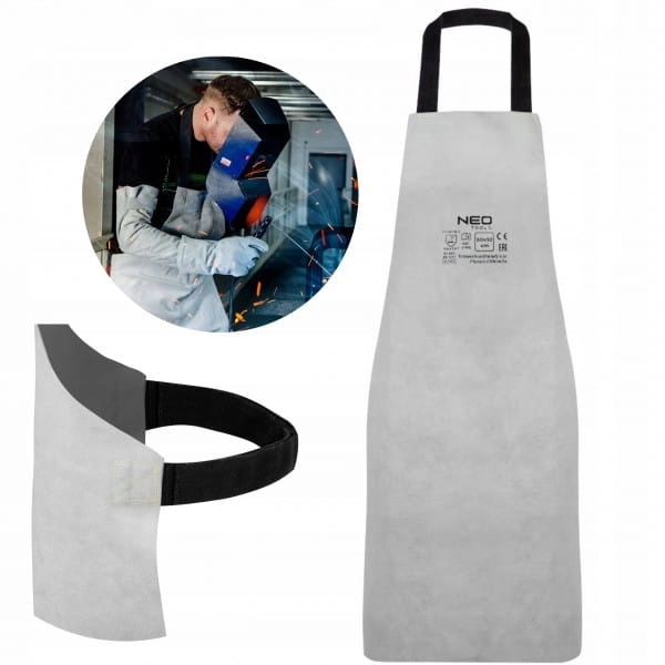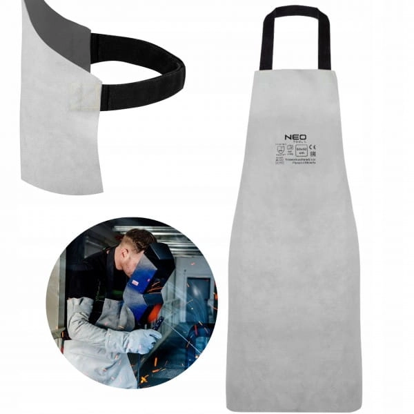 Fartuch spawalniczy skórzany 60 x 90 cm, bawełniane paski 81-891 marki NEO to fartuch wykonany z dwoiny bydlęcej o grubości 1,2-1,4 mm. Wyposażony w parciany pas na szyję o długości 75 cm oraz bawełniany pas lędźwiowy regulowany za pomocą rzepu o długościach od 55 do 100 cm. Oba pasy mocowane są za pomocą solidnej, kevlarowej nici. Fartuch o wymiarze 60 x 90 cm należy do II kategorii ochronnej. Poświadcza się jego zgodność z normą EN ISO 11611:2015 oraz certyfikatem CE. To niezwykle trwała oraz solidna odzież robocza marki NEO przeznaczona do pracy przy zadaniach spawalniczych.