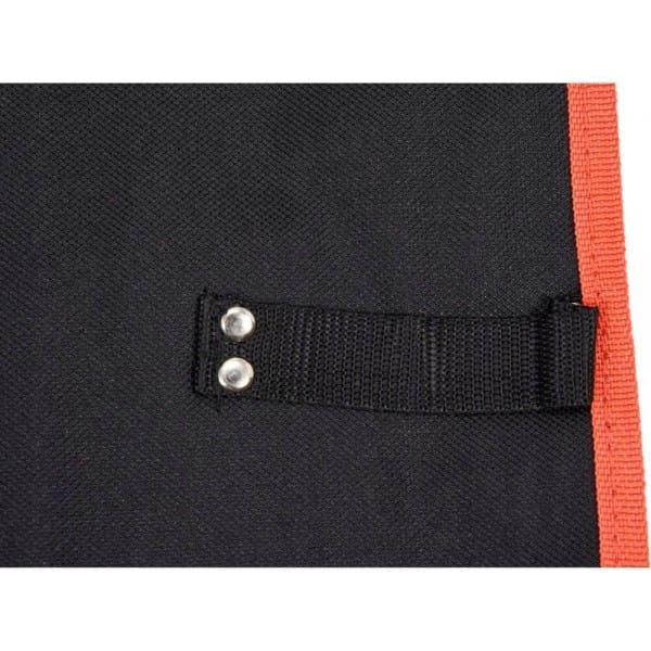 - Wyposażenie fartucha: duża kieszeń, mała kieszeń x5, uchwyt na młotek, uchwyt na taśmę mierniczą