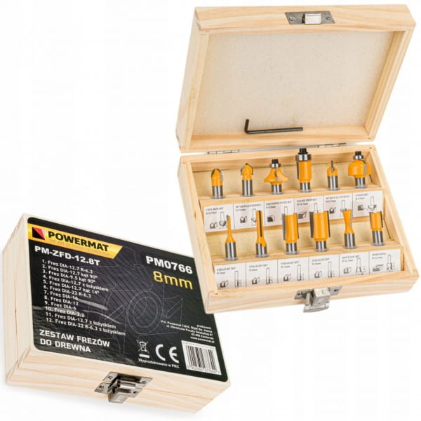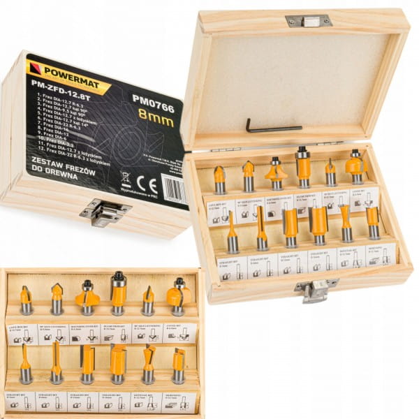 Profesjonalny zestaw frezów do frezarek górno wrzecionowych z uchwytem 8mm. Przeznaczone do obróbki twardego i miękkiego drewna, płyt wiórowych, sklejek itp. Ostrza wykonane z węglików spiekanych z hartowanym trzpieniem.