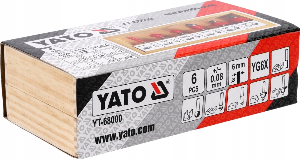 Zestaw 6 frezów trzpieniowych do obróbki drewna i niektórych tworzyw sztucznych przy użyciu frezarki z uchwytem fi 6 mm. Trzy frezy krawędziowe zakończone są łożyskiem ułatwiającym prowadzenie narzędzia. Zestaw zapakowany w drewnianej kasetce.
