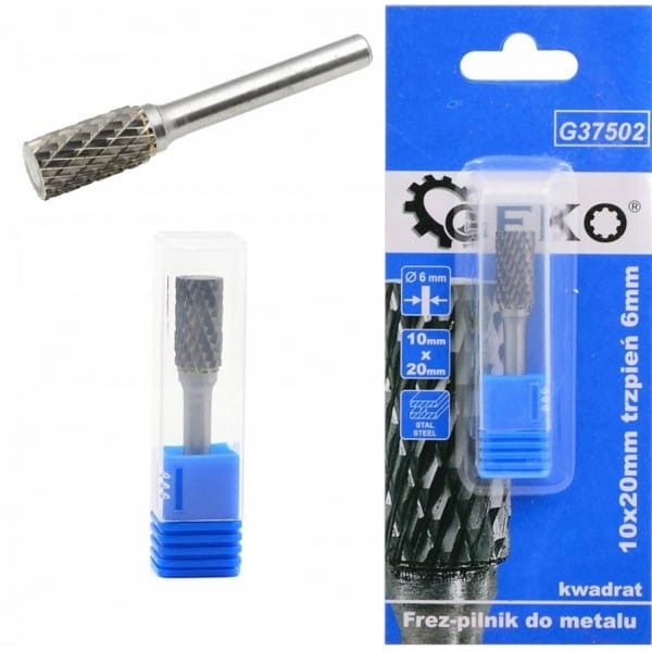 GEKO FREZ PILNIK DO METALU Z WĘGLIKA WOLFRAMU 10X20MM TRZPIEŃ 6MM KWADRAT