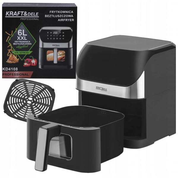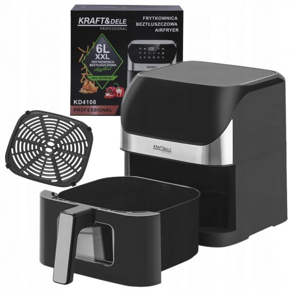 Frytkownica beztłuszczowa KD4108 to nowoczesne urządzenie do zdrowego gotowania, które umożliwia smażenie, pieczenie i grillowanie bez dodatku tłuszczu. Dzięki dużej pojemności 6 litrów oraz mocy 2000 W doskonale sprawdzi się w każdej kuchni – zarówno domowej, jak i profesjonalnej. Wyposażona w czytelny wyświetlacz LED i regulację temperatury w zakresie od 80℃ do 200℃, pozwala precyzyjnie dostosować parametry do rodzaju potrawy.