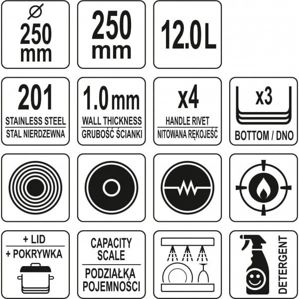 GARNEK 12L INDUKCJA Z POKRYWKĄ 25X25CM WYSOKI YATO