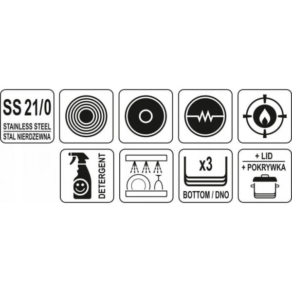 Wkładka ferromagnetyczna w dnie pozwala na stosowanie garnków YATO na każdym rodzaju kuchenek, takich jak: