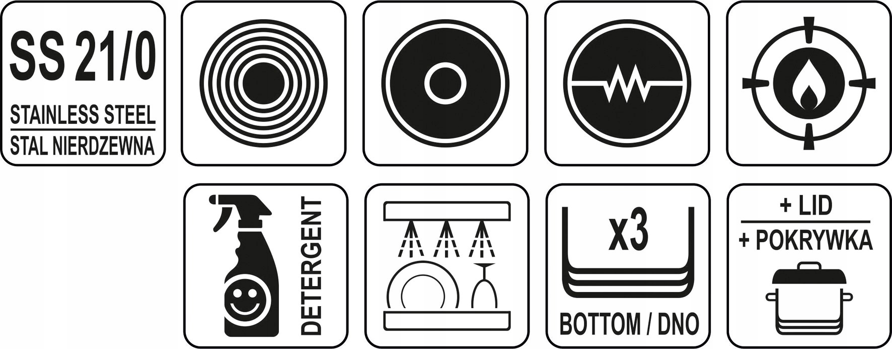 Wkładka ferromagnetyczna w dnie pozwala na stosowanie garnków YATO na każdym rodzaju kuchenek, takich jak: