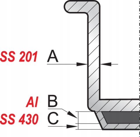 Wykonany jest z wysokiej jakości stali nierdzewnej 201 do użytku w gastronomii.