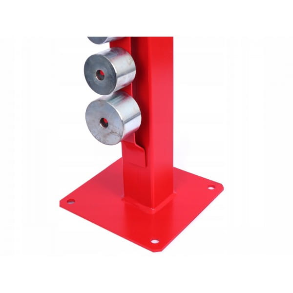 Płyta montażowa z grubej stali z 4 otworami umożliwia solidne i stabilne przymocowanie giętarki do podłoża, co przekłada się na komfortową i wydajną pracę.