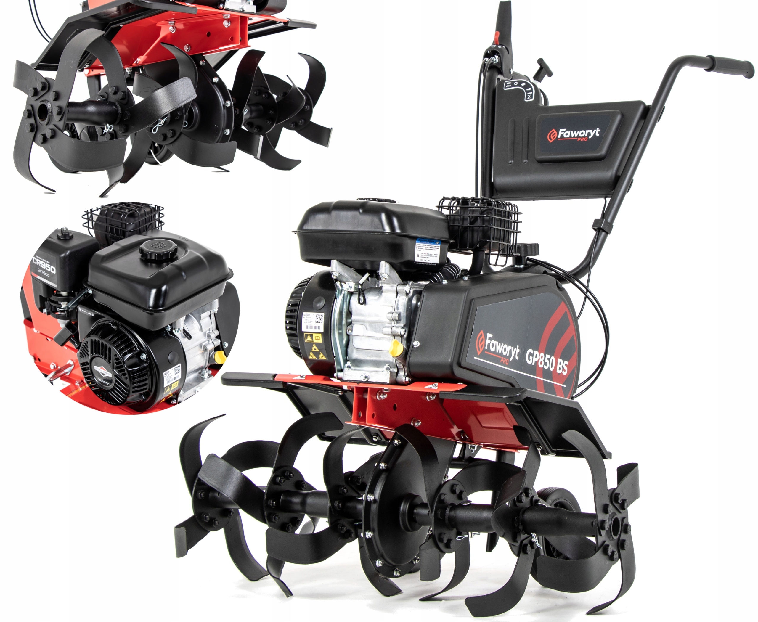 Glebogryzarka spalinowa Faworyt Pro GP 850BS to wydajny sprzęt o dużych możliwościach, przystosowany jednak do potrzeb użytkownika indywidualnego, nieprofesjonalnego. Wyposażona jest w silnik Briggs&Stratton serii CR950 z żeliwną tuleją o pojemności 208 cm3. Szerokość robocza 36-55-85 cm oraz głębokość robocza 35 cm dają możliwość skutecznego spulchnienia gleby o niskiej i średniej twardości. Użytkownik ma do dyspozycji po 1 biegu w przód oraz tył. Za satysfakcjonujące rezultaty pracy odpowiadają noże o specjalnym kształcie. Stalowa obudowa i waga 56,8 kg zapewniają wytrzymałość glebogryzarce, nie stanowiąc przy tym przeszkody w wygodnej pracy, ponieważ model ten wyposażono w praktyczne koła podporowe. Innymi funkcjonalnymi rozwiązaniami zastosowanymi przez producenta są też ergonomiczne uchwyty z dźwigniami, boczne osłony noży i ogranicznik głębokości.
