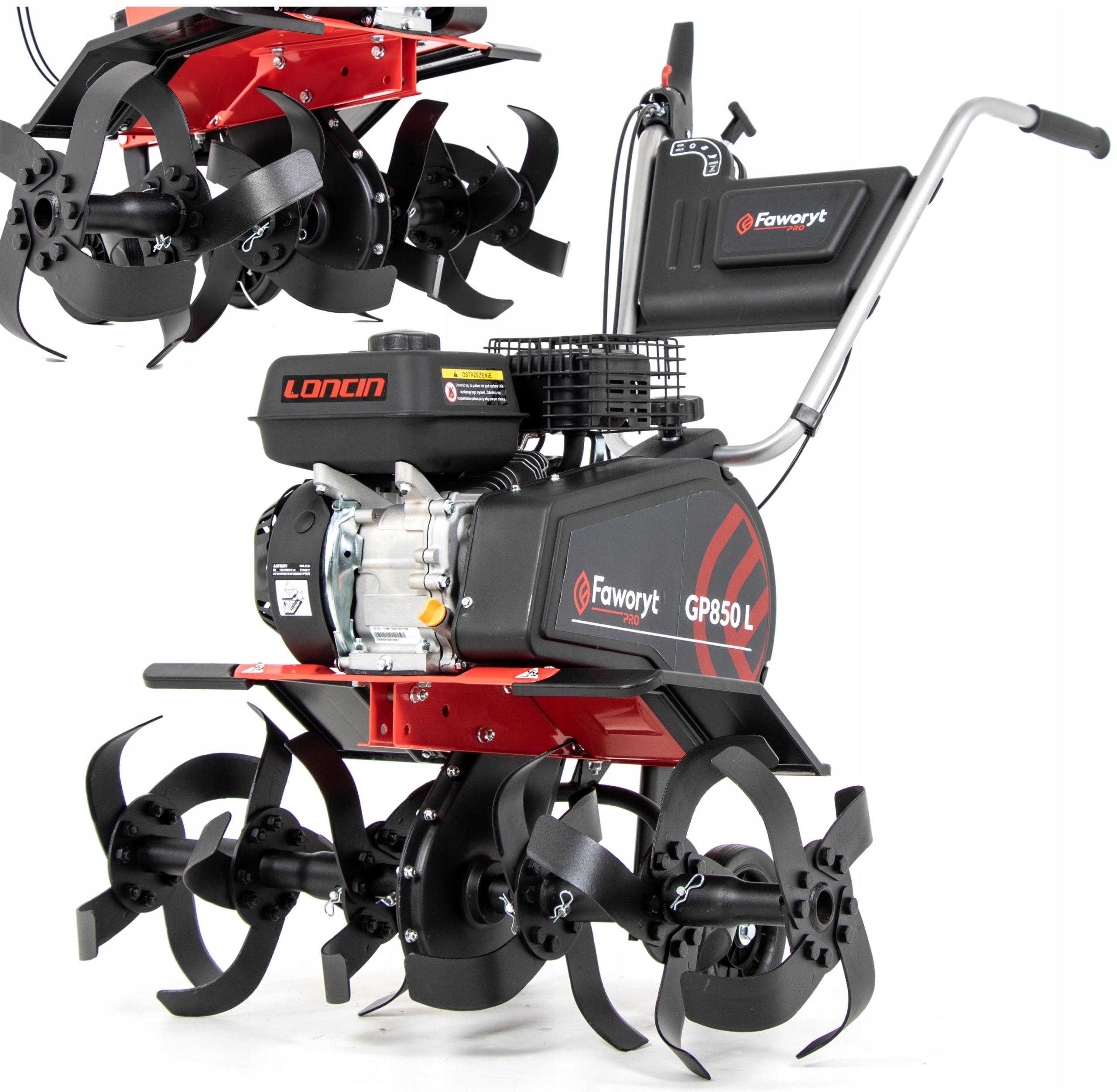 Glebogryzarka spalinowa Faworyt Pro GP850 L wyposażony jest w silnik Loncin z żeliwną tuleją o pojemności 196 cm3. Szerokość robocza, jaką może uzyskać użytkownik tej glebogryzarki, wynosi 36-55-85 cm. Głębokość robocza urządzenia pozwala na dotarcie na 33 cm w głąb gleby. Korzystanie z tego modelu jest jeszcze łatwiejsze, ponieważ użytkownik ma do dyspozycji nie tylko 1 bieg do przodu, ale też do tyłu. Waga sprzętu wynosi ponad 57 kg, więc jest to już model o znaczących gabarytach, więc bardzo ważne są też zastosowane przez producenta ułatwienia dotyczące jego obsługi. Wykorzystano w tym celu solidne koła transportowe, a także dającą komfort podczas pracy i kontrolę nad maszyną rączkę do sterowania nią. Bardzo ważne jest, aby przed pierwszym użyciem zapoznać się z instrukcją obsługi i zastosować się do wszystkich zaleceń dotyczących bezpieczeństwa, aby praca była bezpieczna dla użytkownika i nie generowała ryzyka awarii urządzenia.