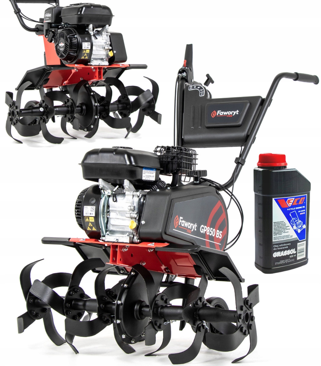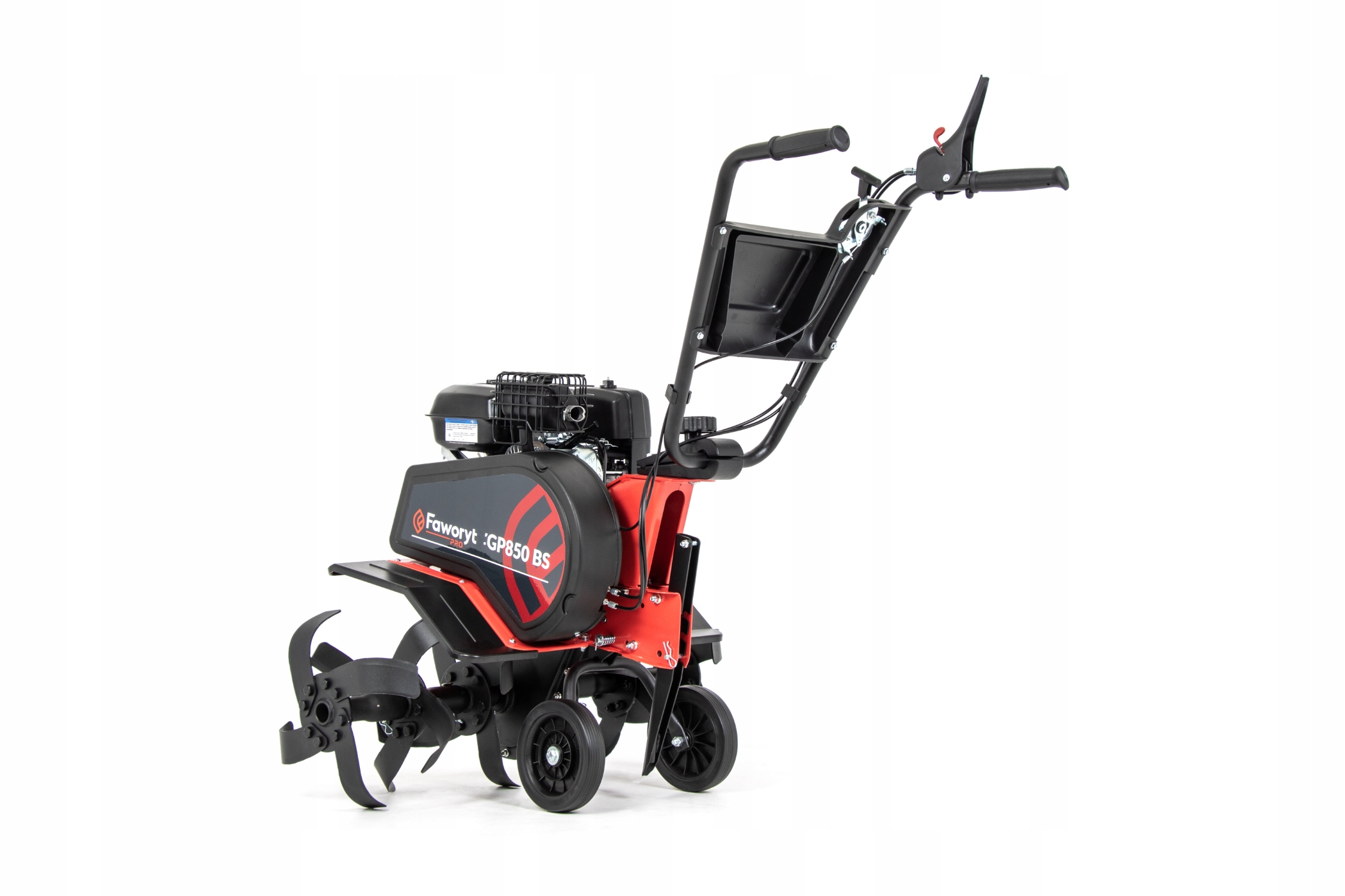 Glebogryzarka spalinowa Faworyt Pro GP 850BS to wydajny sprzęt o dużych możliwościach, przystosowany jednak do potrzeb użytkownika indywidualnego, nieprofesjonalnego. Wyposażona jest w silnik Briggs&Stratton serii CR950 z żeliwną tuleją o pojemności 208 cm3. Szerokość robocza 36-55-85 cm oraz głębokość robocza 35 cm dają możliwość skutecznego spulchnienia gleby o niskiej i średniej twardości. Użytkownik ma do dyspozycji po 1 biegu w przód oraz tył. Za satysfakcjonujące rezultaty pracy odpowiadają noże o specjalnym kształcie. Stalowa obudowa i waga 56,8 kg zapewniają wytrzymałość glebogryzarce, nie stanowiąc przy tym przeszkody w wygodnej pracy, ponieważ model ten wyposażono w praktyczne koła podporowe. Innymi funkcjonalnymi rozwiązaniami zastosowanymi przez producenta są też ergonomiczne uchwyty z dźwigniami, boczne osłony noży i ogranicznik głębokości.