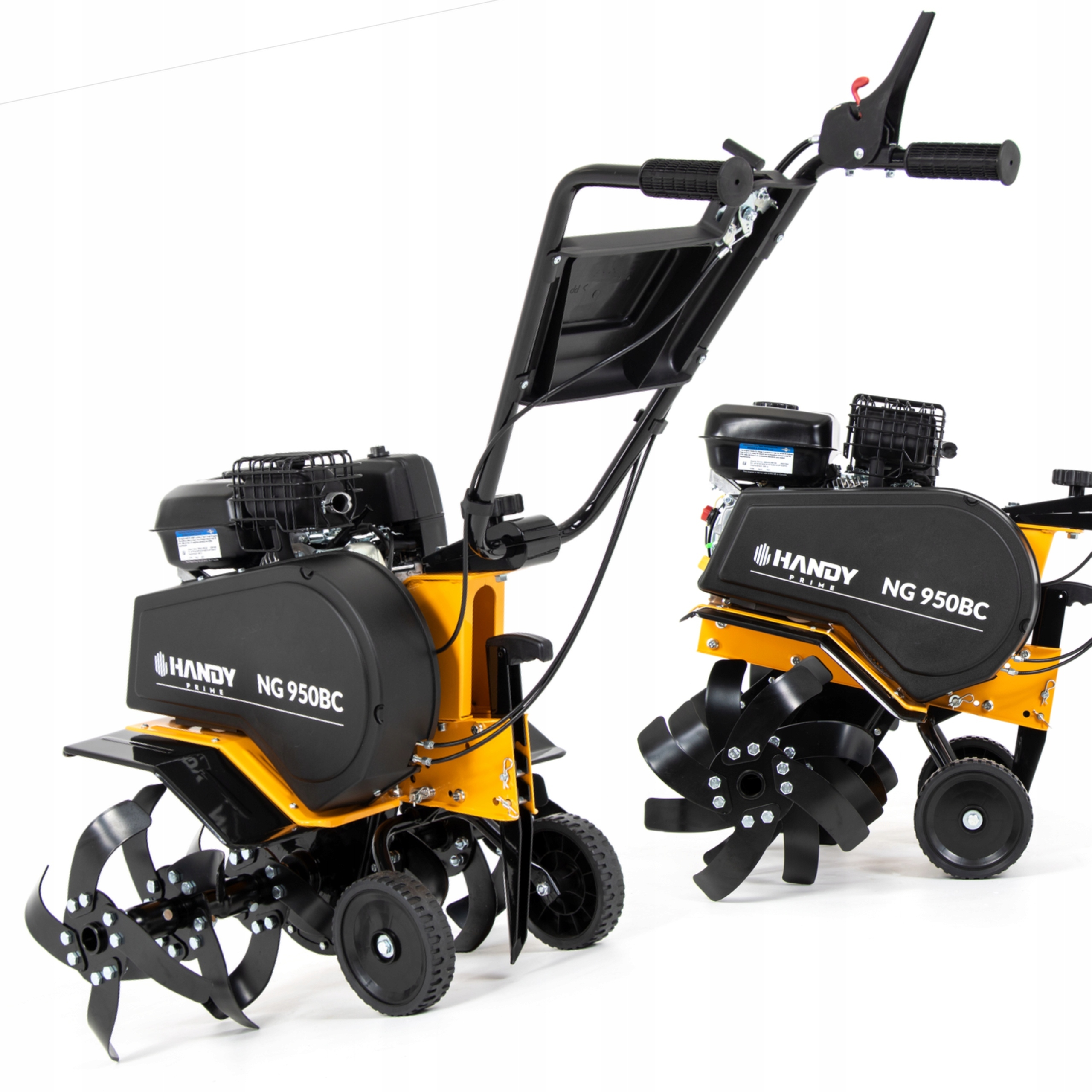 Glebogryzarka spalinowa Handy Prime NG950BC pozwoli Ci na kultywację i spulchnianie gleby za pomocą specjalnych noży, które wprawiane są w ruch dzięki 4-suwowemu silnikowi renomowanej, cenionej na całym świecie firmy Briggs & Stratton seria CR950 (żeliwna tuleja). Ma on pojemność 208 cm3 i moc 4,2 kW. Szerokość robocza, z jaką pracuje glebogryzarka, wynosi 36-55- 85 cm, a maksymalna głębokość robocza 35 cm. Jeden bieg do przodu oraz do tyłu wraz z solidnymi kołami podporowymi dają możliwość swobodnego, komfortowego przemieszczania się z urządzeniem. Na komfort pracy operatora pozytywny wpływ ma z kolei regulowany uchwyt pion-poziom. Stalowa obudowa glebogryzarki spalinowej Handy Prime NG950BC to natomiast gwarancja wysokiej odporności mechanicznej sprzętu, która jest niezbędna, jeżeli ma on być dla Ciebie zakupem na wiele lat.