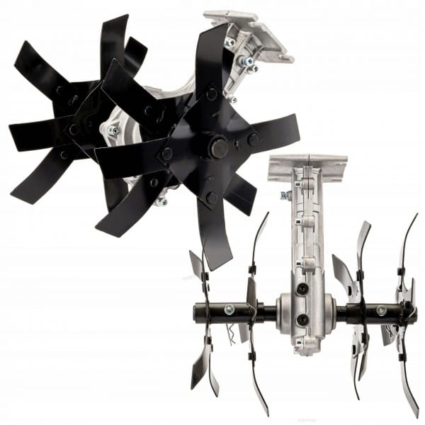 - Przystawka do kosy spalinowej - glebogryzarka umożliwia spulchnianie i napowietrzanie gleby w celu przygotowania podłoża pod uprawę roślin.