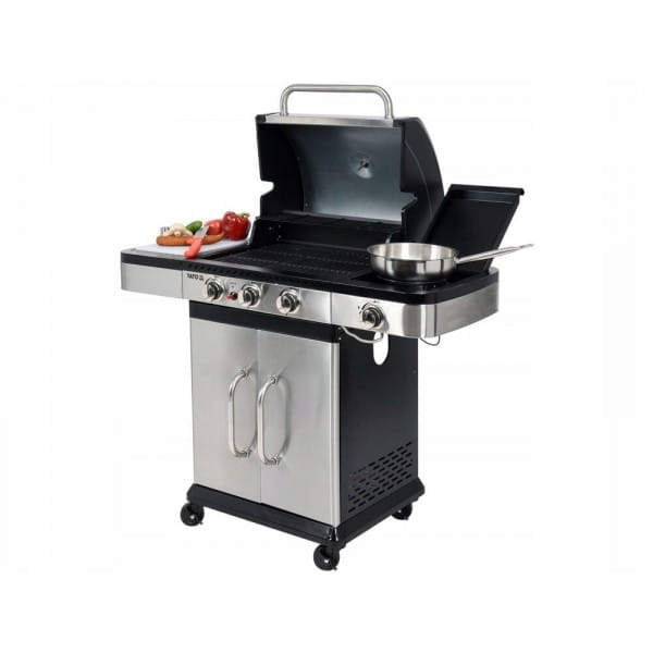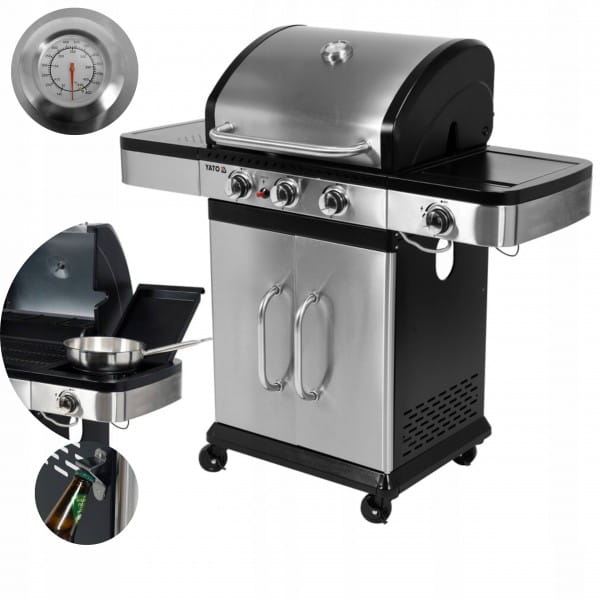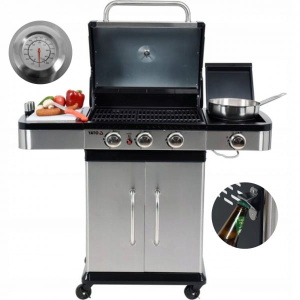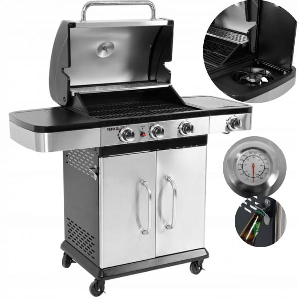 YATO GRILL GAZOWY 3+1 STAL NIERDZEWNA 11,2KW Z MIEJSCEM NA BUTLE YG-20018