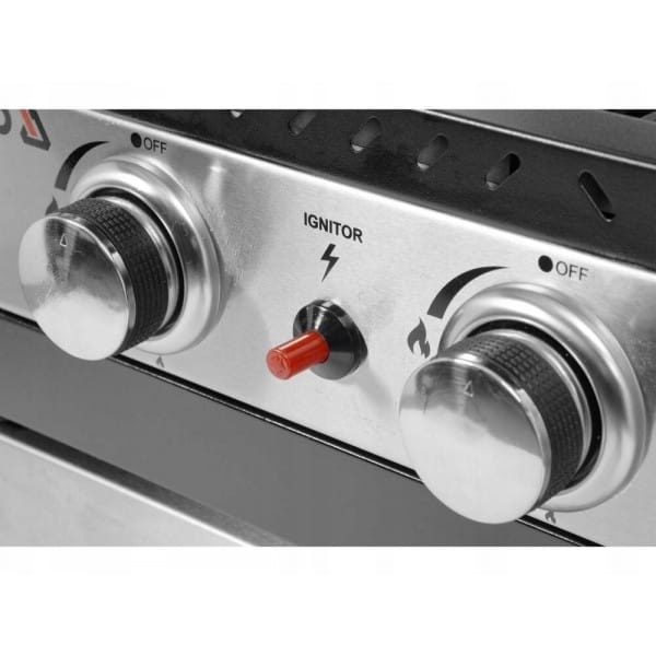 Półki boczne oraz pojemna, zamykana szafka ułatwią przechowywanie przypraw i niezbędnych akcesoriów. Palnik boczny o mocy 2,2 kW umożliwi gotowanie i podgrzewanie potraw w garnku lub na patelni.
