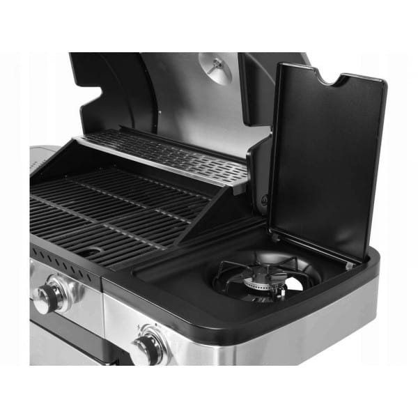 - ilość palników: 3+1, czyli 3 palniki główne ze stali nierdzewnej, każdy o mocy 3 kW. 1 palnik boczny o mocy 2,2 kW;