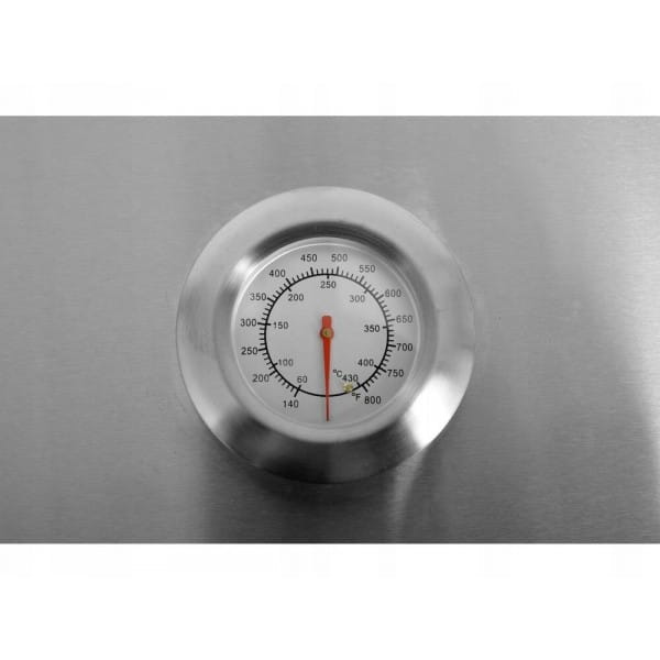- Termometr w pokrywie zapewnia kontrolę nad temperaturą wewnątrz grilla.