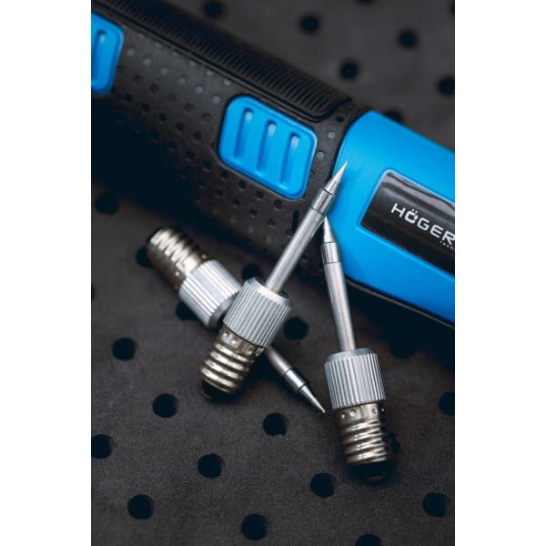W zestawie znajdują się groty do lutownicy akumulatorowej HT2C315.