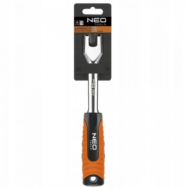 Rękojeść z przegubem 1/2" NEO (nr ref. 08-559) o długości 250 mm. Wykonana z wytrzymałej stali chromowo-wanadowej. Ergonomiczny, dwumateriałowy uchwyt poprawia komfort pracy. Jakość narzędzia potwierdzona certyfikatem TÜV i 25-letnią gwarancją producenta. Marka NEO spełnia oczekiwania profesjonalistów.