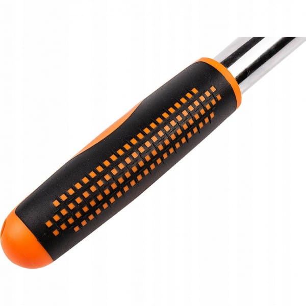 Ergonomiczny, wyprofilowany uchwyt pokryty antypoślizgowym tworzywem znacząco ułatwiający pracę podczas dokręcania.