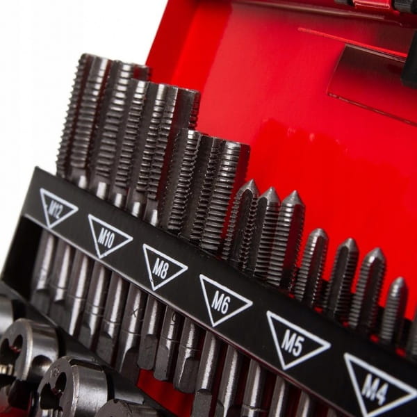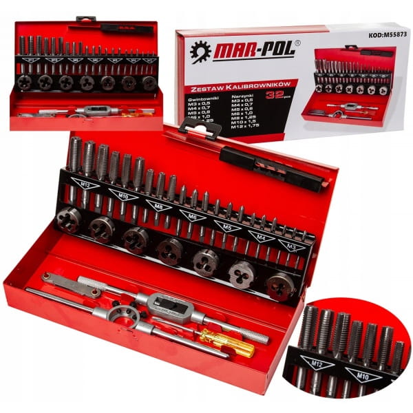 ✅Nowoczesny zestaw gwintowników i narzynek M3 - M12. W skład zestawu wchodzą 32 różne narzędzia wykonanych z wysokogatunkowej stali. Całość umieszczono w metalowej walizce do transportu i przechowywania.