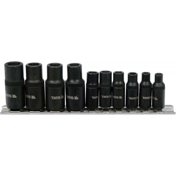 YATO ZESTAW 10 ADAPTERÓW NASADEK GWINTOWNIKÓW NA GRZECHOTKĘ 1/4'' 3/8
