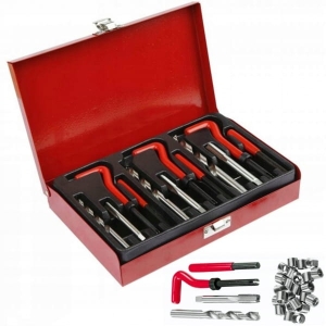 - Zestaw służy do naprawy połączeń gwintowanych każdego rodzaju w większości materiałów. Dzięki dużej ilości elementów zestaw jest bardzo uniwersalny.