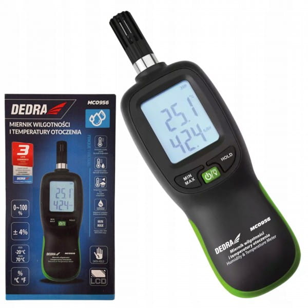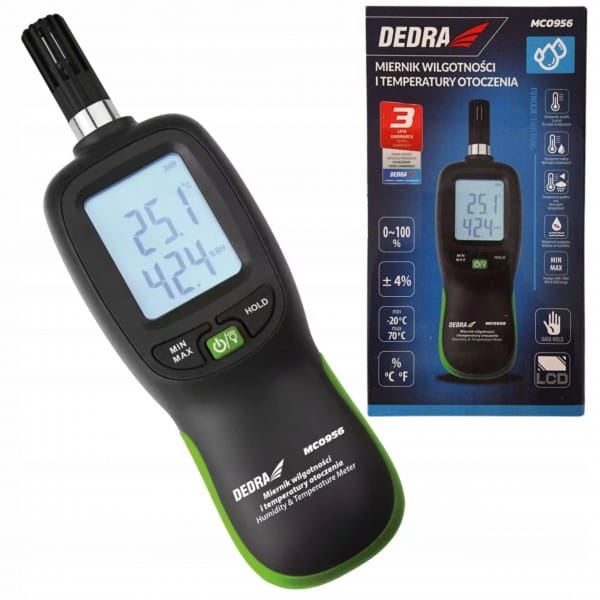 Cechy miernika wilgotności i temperatury otoczenia DEDRA MC0956: