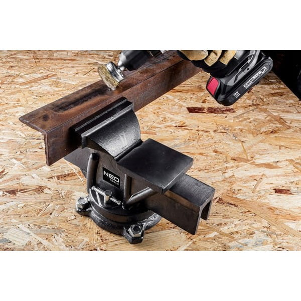 Imadło ślusarskie NEO (nr ref. 35-012) o dużej sile nacisku szczęk, o długości 125 mm. Przeznaczone do mocowania przedmiotów, poddawanych obróbce ręcznej lub maszynowej. Solidna, żeliwna konstrukcja oraz precyzyjne prowadzenie szczęk umożliwiają wykorzystanie imadła podczas ciężkich prac. Obrotowa podstawa pozwala umieścić obrabiany przedmiot w najwygodniejszej pozycji do pracy. Gwarantem wysokiej jakości i niezawodności produktu jest certyfikat TÜV Rheinland. Marka NEO spełnia oczekiwania profesjonalistów.