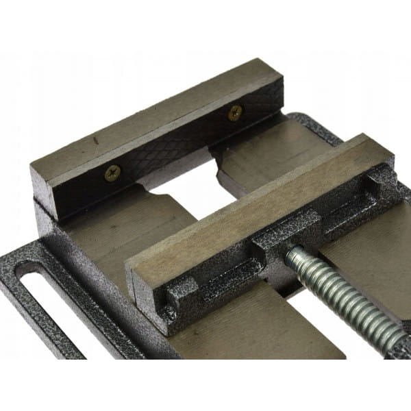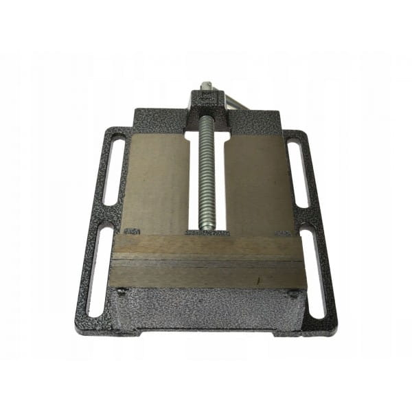 Imadło wiertarskie z rowkowaną podstawą umożliwiającą łatwy montaż i pozycjonowanie imadła. Wykonane ze staliwa z trwałymi stalowymi szczękami z nacięciami krzyżykowymi.