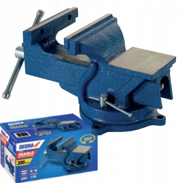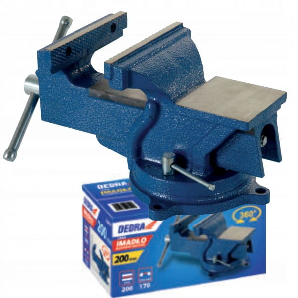 Służy do mocowania materiału podczas takich prac jak: szlifowanie, cięcie, wiercenie, gwintowanie itp. Obrotowa podstawa pozwala zmieniać położenie materiału bez konieczności odkręcania imadła. Odlew żeliwny, szczęki ze stali.