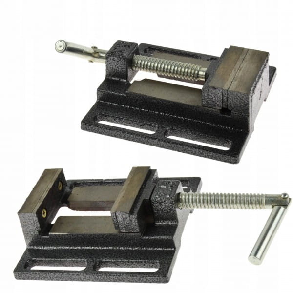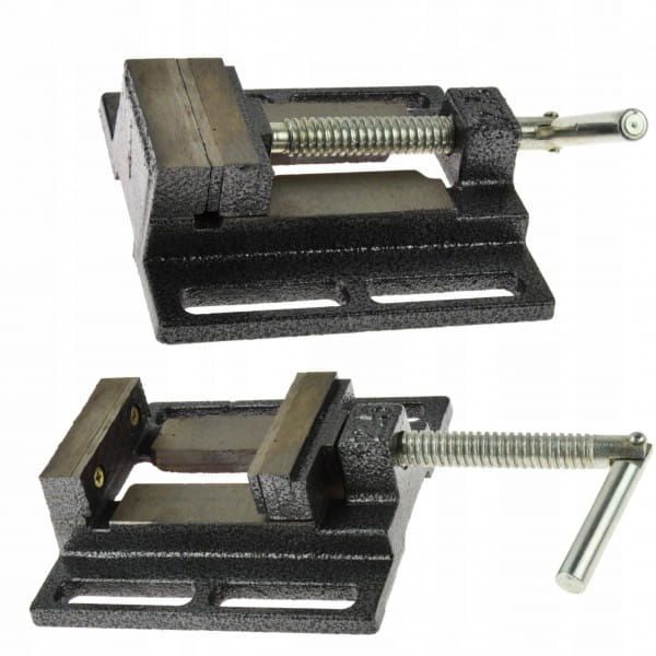 Imadło wiertarskie z rowkowaną podstawą umożliwiającą łatwy montaż i pozycjonowanie imadła. Wykonane ze staliwa z trwałymi stalowymi szczękami z nacięciami krzyżykowymi.