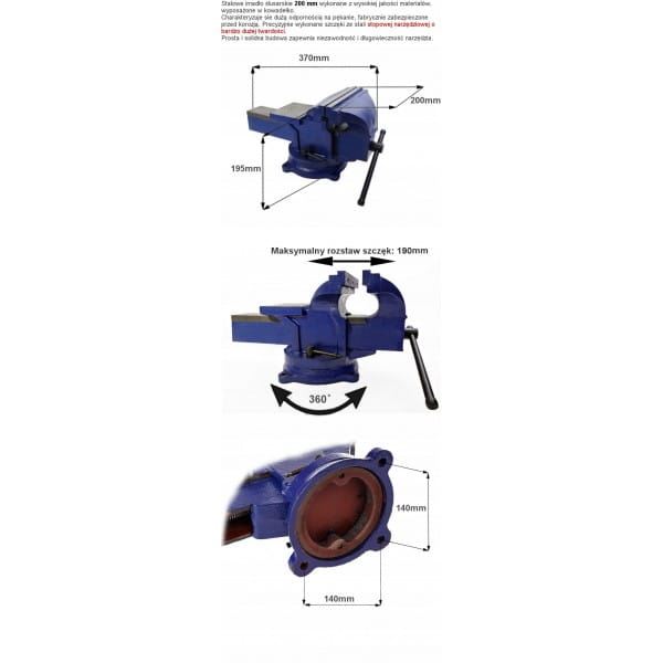 SOLIDNE DUŻE IMADŁO ŚLUSARSKIE OBROTOWE Z KOWADŁEM STALOWO ŻELIWNE 200MM