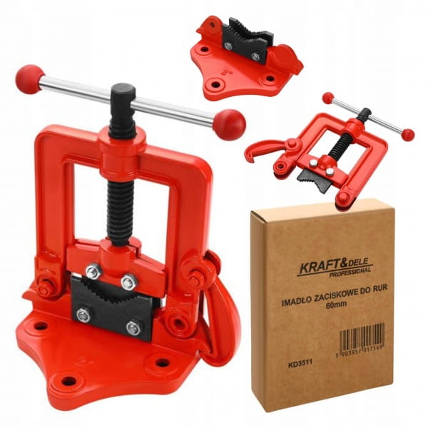 Imadło zaciskowe do rur KD3511 to niezawodne narzędzie przeznaczone do mocowania rur stalowych, miedzianych, aluminiowych oraz innych elementów o przekroju okrągłym. Dzięki solidnej konstrukcji i szczękom zaciskowym o zakresie do 60 mm zapewnia stabilne i bezpieczne trzymanie podczas cięcia, gwintowania czy spawania.