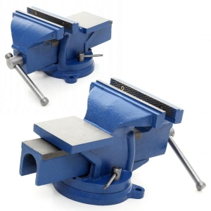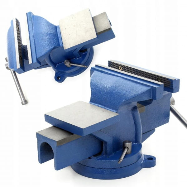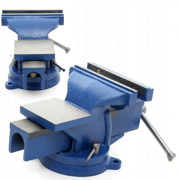 Imadło obrotowe o szerokości szczęk 200 mm i wadze 21 kg to solidne narzędzie warsztatowe, wykonane z wysokiej jakości materiałów, zapewniające trwałość i niezawodność w codziennej pracy. Wyposażone w kowadełko i obrotową podstawę 360°, idealne do precyzyjnego mocowania elementów podczas obróbki.