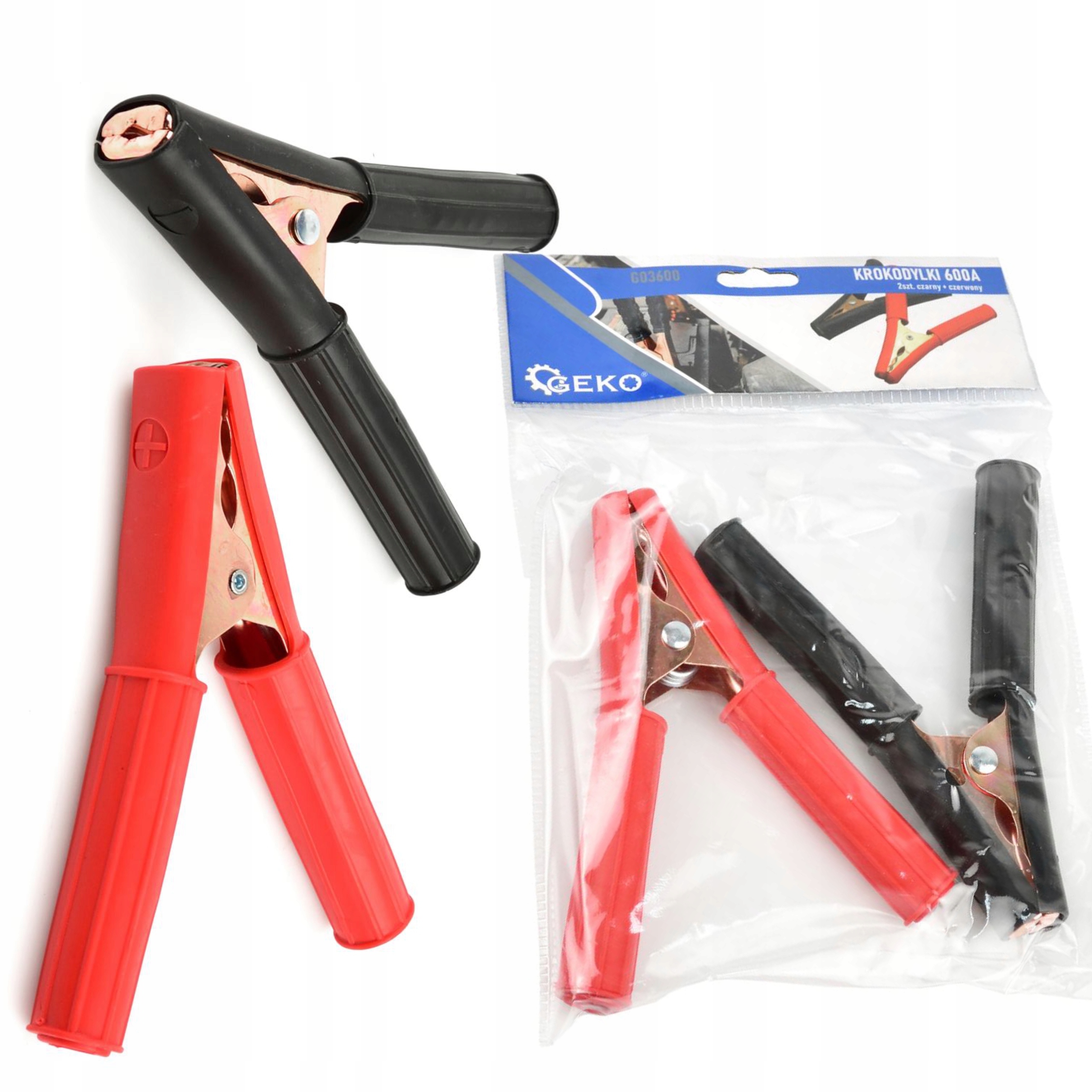 Kleszczowe zaciski akumulatorowe „krokodylki”, przystosowane do prądu o natężeniu nie przekraczającym 600A. Przeznaczone do stosowania w kablach rozruchowych, prostownikach samochodowych itp. Mocna sprężyna zacisków gwarantuje dobre połączenie elektryczne.