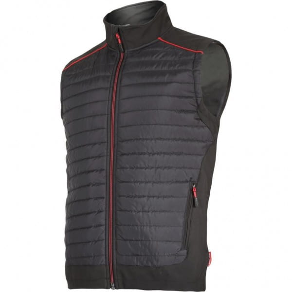 Bezrękawnik ocieplany Lahti Pro L41310 w kolorze czarnym uszyta z trójwarstwowego bardzo mocnego i miłego w dotyku materiału. Powłoka kamizelki wykonana ze stu procentowego poliestru o gramaturze 70g/m2. Tkanina soft-shell 96% poliestru oraz cztery procent elastanu o gramaturze 310g/m2. Wewnątrz kamizelki ocieplina o gramaturze 120g/m2. Podszewka wykonana z tafty 50g/m2 oraz micropolaru o gramaturze 160g/m2. Wstawki z trójwarstwowej tkaniny soft-shell z membraną TPU. Wodoodporność 8000mm oddychalność 3000g/m2/24h gwarantują wysoki komfort podczas użytkowania. Trzy kieszenie zamykane na suwak dwie zewnętrzne i jedna zewnętrzna. Kamizelka Lahti Pro L41310 zapinana na zamek błyskawiczny. Regulacja szerokości dołu kamizelki za pomocą specjalnego ściągacza. Wszystkie kamizelki posiadają certyfikat CE oraz spełniają normę EN ISO 13688.